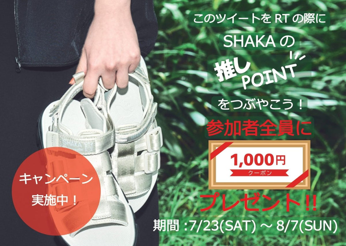 期間中にキャンペーンにご参加いただいた方全員にSHAKA公式オンラインストアで使える1,000円オフクーポンをプレゼント!