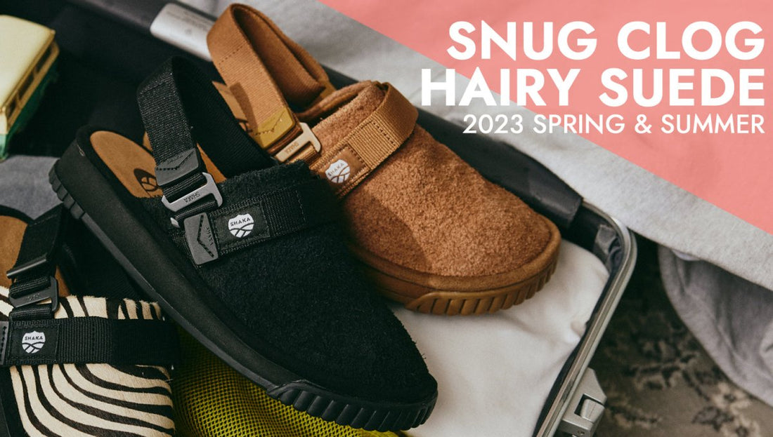 足にストレスの少ないオブリークトゥのアッパーに、幅広で安定感のあるWIDE ORIGINAL SOLEを採用したクロッグサンダル『SNUG CLOG HAIRY SUEDE / スナッグクロッグヘアリースエード』。