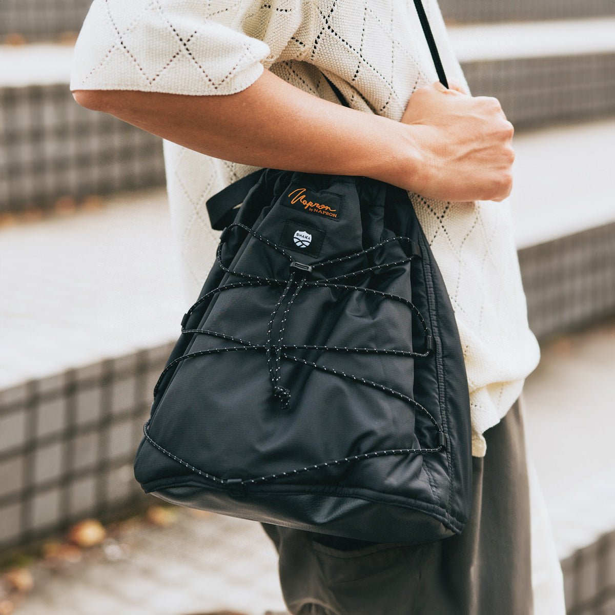 NAPRONの定番であるPATIENTS BAG(ペイシェントバッグ)のレギュラーサイズに、SHAKA(シャカ)の2024年秋冬スニーカーサンダルのディテールを落とし込んだオリジナルデザインのラップド・ペイシェントバッグです。