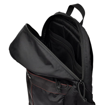 メインコンパートメントは荷物の出し入れがしやすく、中身の見やすいメッシュポケットを配し、タブレットやノートPCも収納可能なスリーブと使いやすさを考えたディテールにしました。