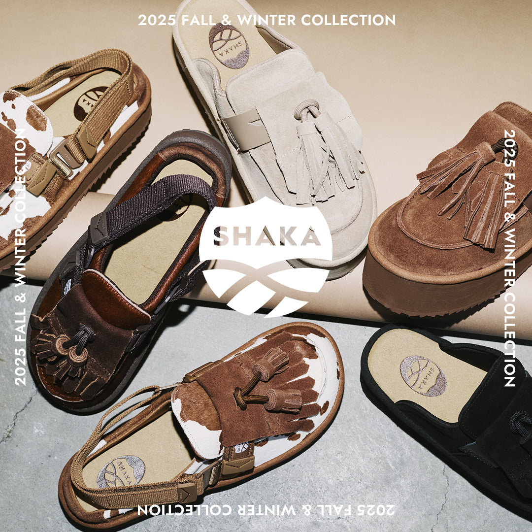 アウトソールにはSHAKAを象徴するサメの歯のような形状が街履きでもアウトドアの地面でも高いグリップ力と誇る、オリジナルソールを使用。
