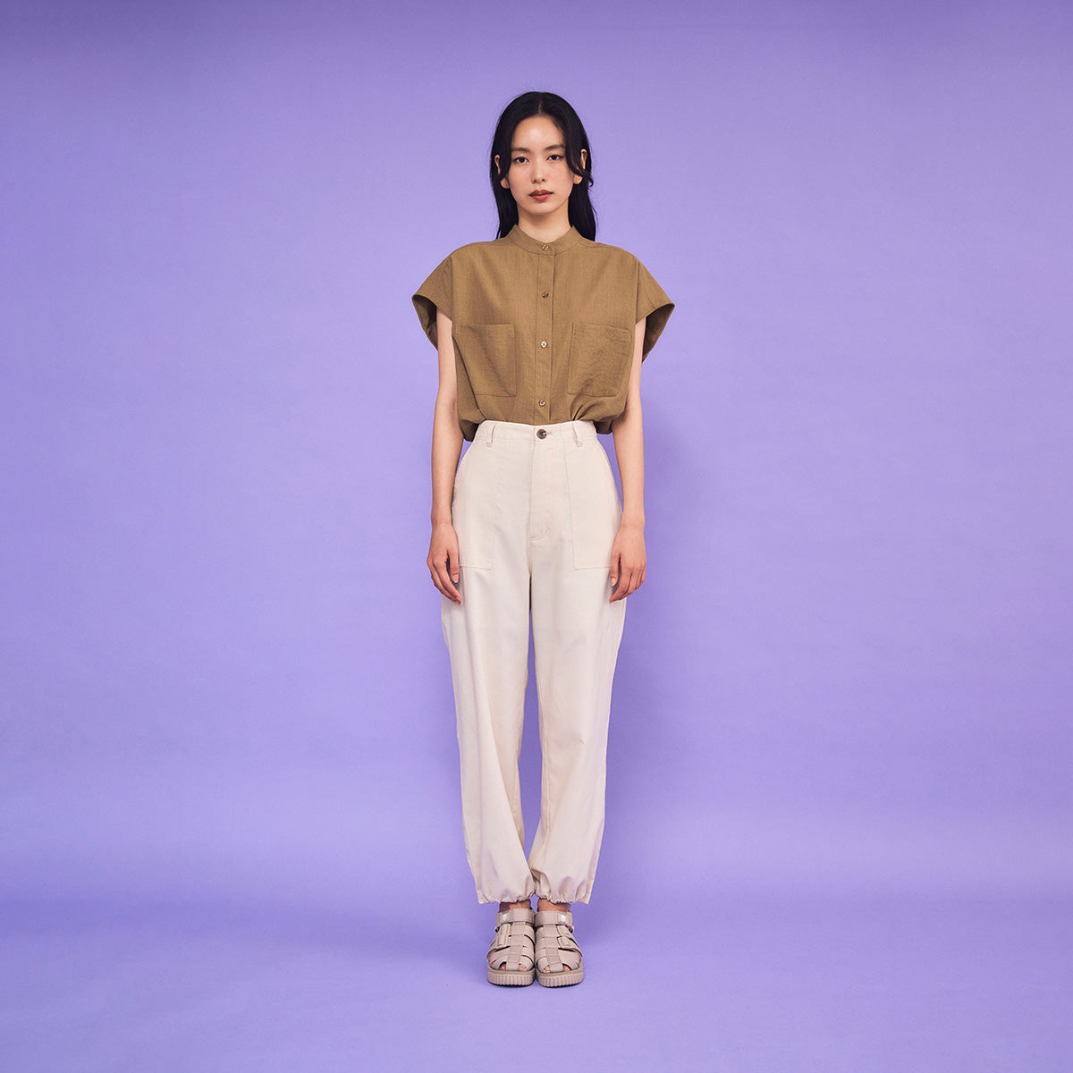 シンプルなワントーンデザインでキレイめスタイルにもマッチ。スラックスやチノパン、タイトスカートや上品ワンピースとも相性抜群です。ゴールド&シルバーのメタル系アクセサリーやかごバッグ、レザーグッズで合わせればより大人な印象に。