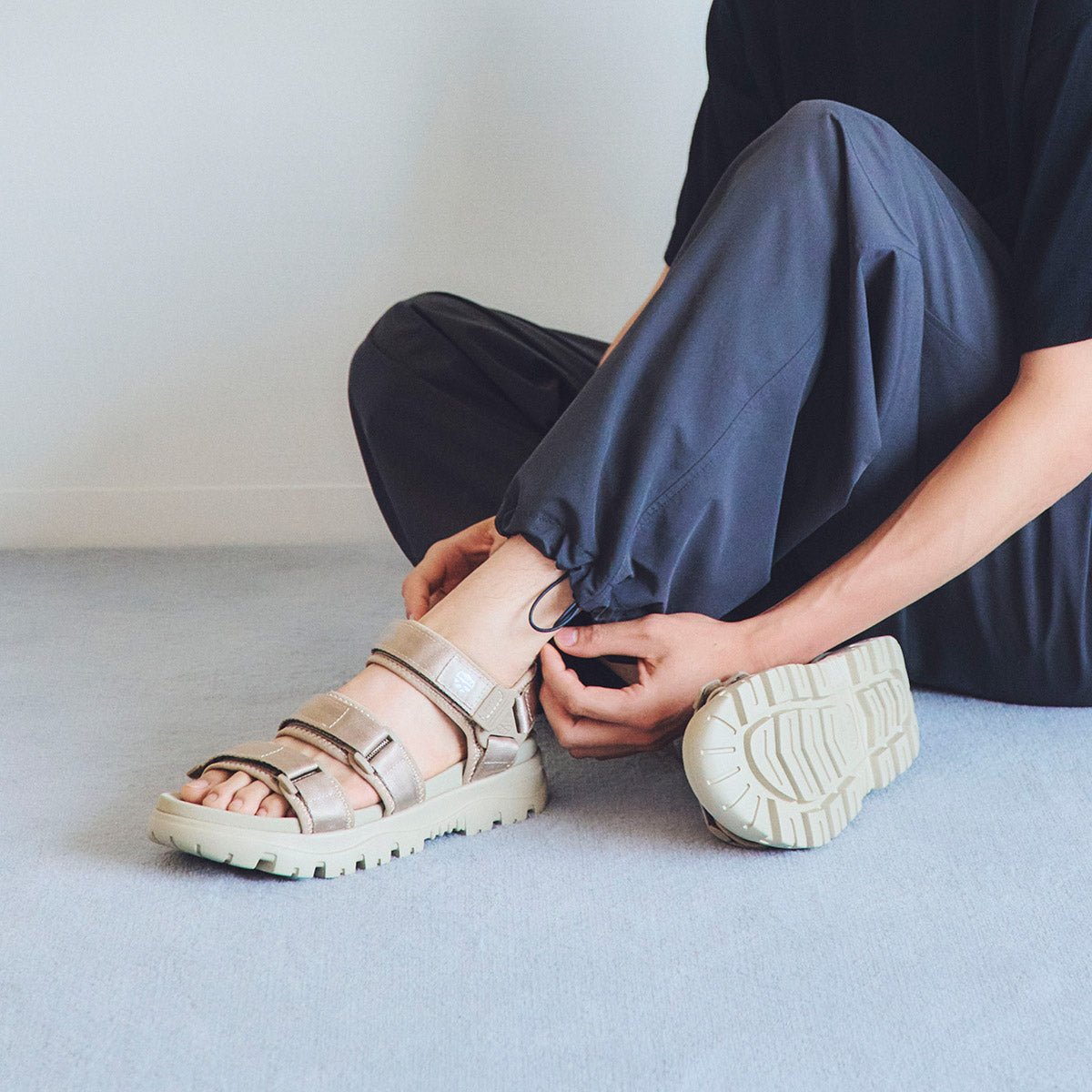甲とアンクル、3か所での調整が可能なデザインは、足にぴったりとフィット。ベルクロ仕様なので着脱も簡単。これにより、様々なアクティビティに対応し、快適な履き心地を提供します。