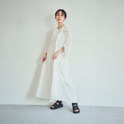 シンプルなワントーンデザインでキレイめスタイルにもマッチ。スラックスやチノパン、スカートや上品ワンピースとも相性抜群です。ゴールド&シルバーのメタル系アクセサリーやかごバッグ、レザーグッズで合わせればより大人な印象に。