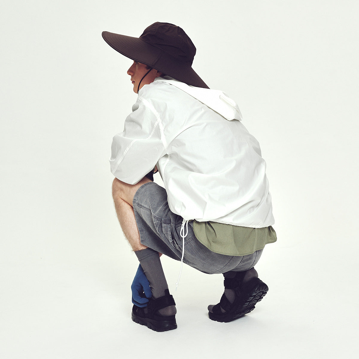 スポーティーなテック系のウェアやジャージ素材のアイテムとの相性も抜群。夏はシンプルなTシャツやノースリーブ、レギンスレイヤードで軽快に。SHAKA(シャカ)のスポーツサンダルで動きやすさとおしゃれを両立。