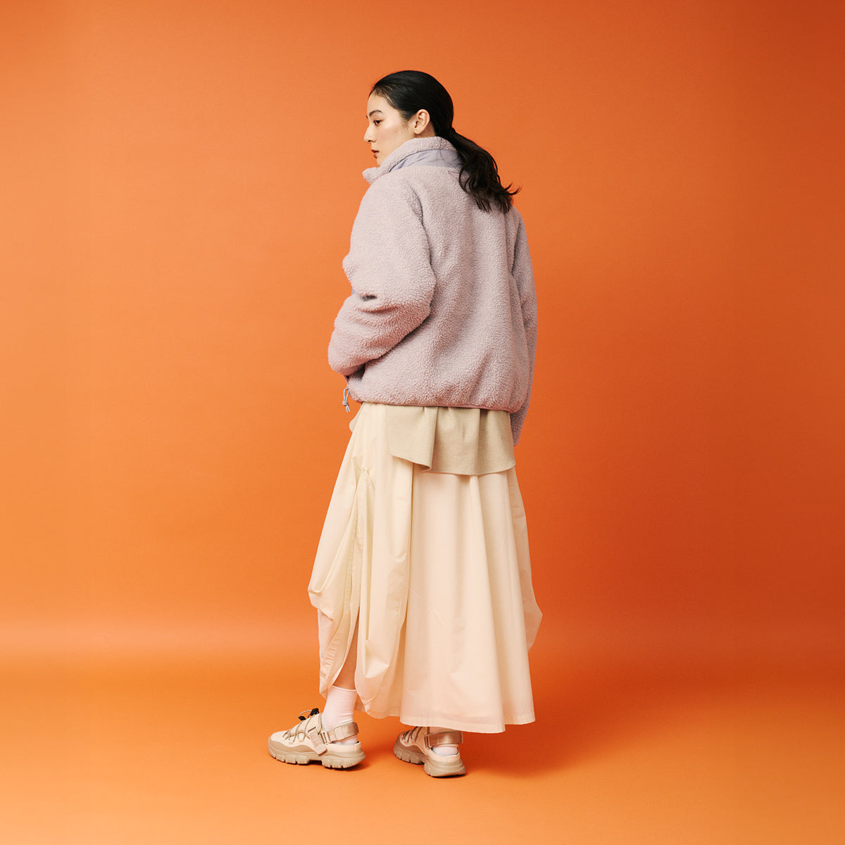 アッパーには、印象的なオニオンキルティングをカバーとして配置し、リフレクター付きのドローコードでホールドすることで、テック感あふれるデザインを実現。2025年秋冬モデルでは、リップストップ素材を変更し、裏面に防水フィルムを貼ることで雨に強い仕様へと進化しました。
