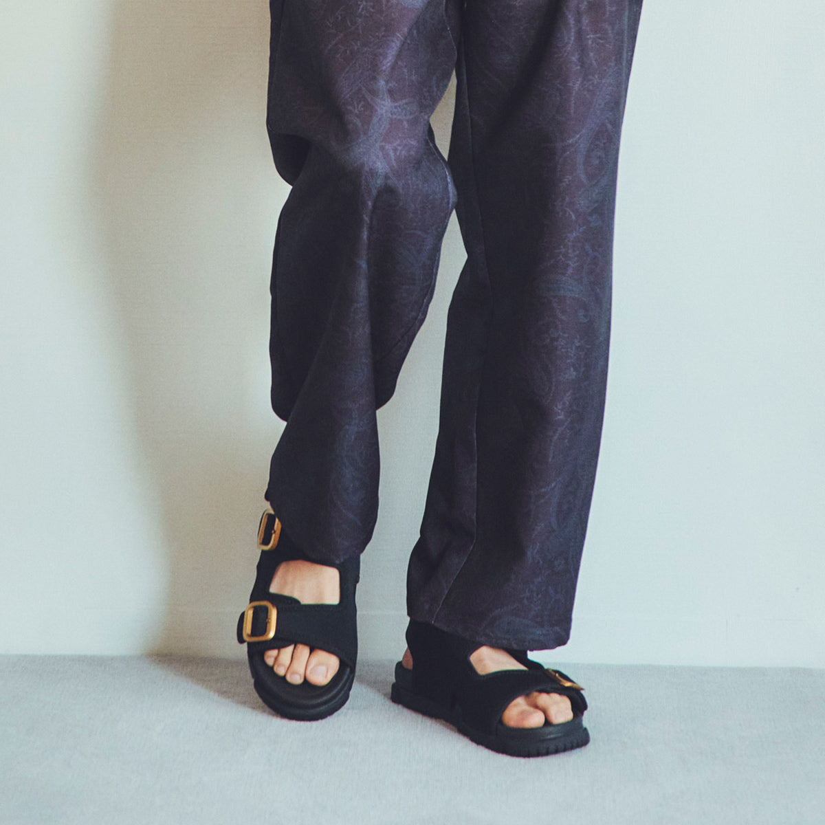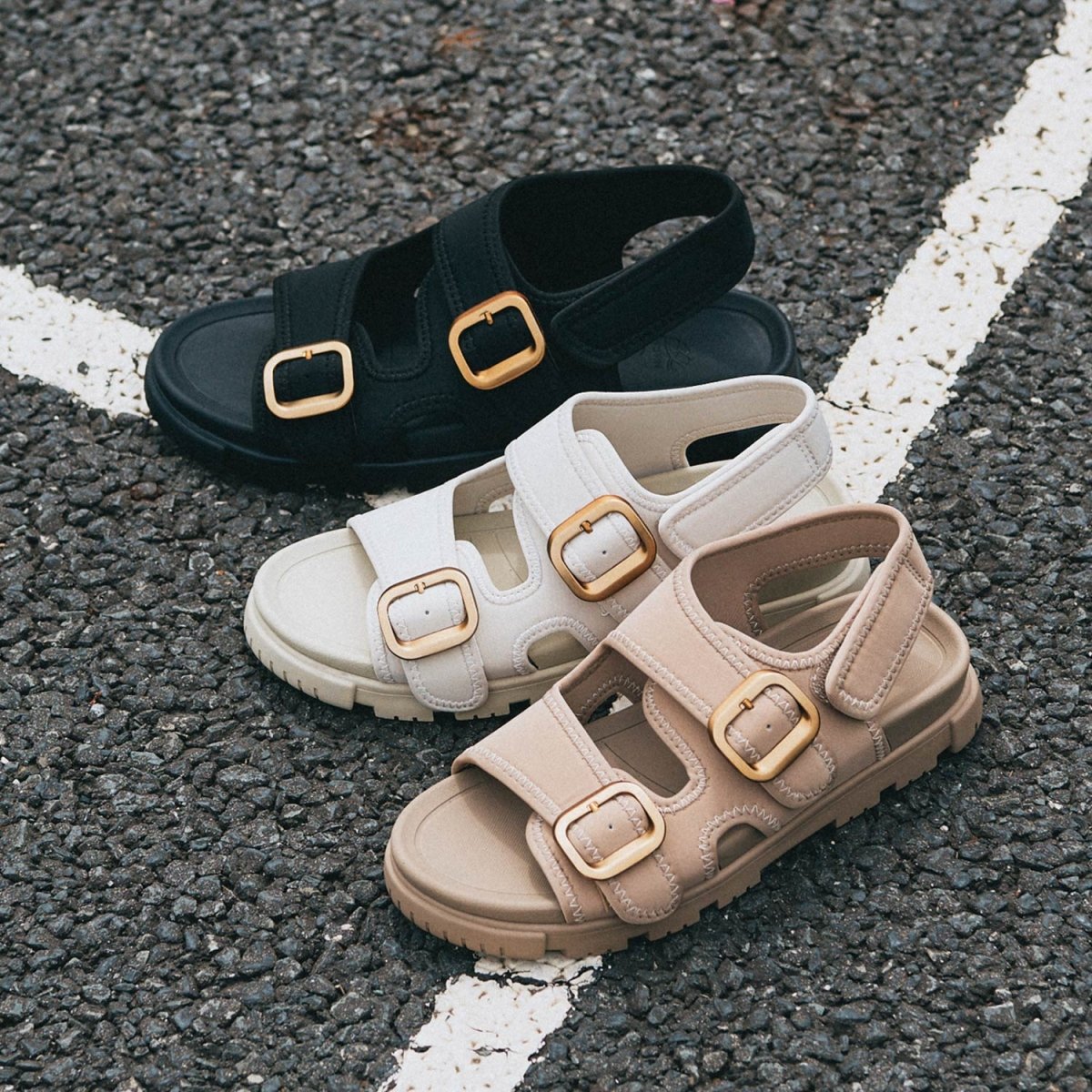 2025年春夏の新作サンダル「COASTLINE PARA BF」のアッパーには、張りがありつつソフトで快適なネオプレン素材を使用。足にフィットしやすく、長時間の着用でもストレスフリーな履き心地。また、マットなゴールドカラーのバックルが高級感を演出し、ラグジュアリーなムードを融合。この存在感のあるメタルバックルがシンプルなスタイルにアクセントを加え、デイリーカジュアルをスタイリッシュに格上げし大人のファッションに欠かせないアイテムとして活躍してくれる新作サンダルに仕上がりました。