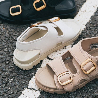 ・ネオプレンアッパーとマットゴールドバックルの上質なデザイン