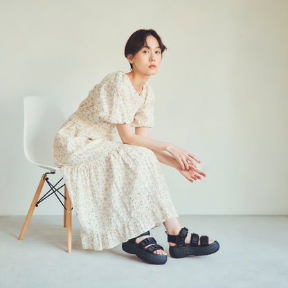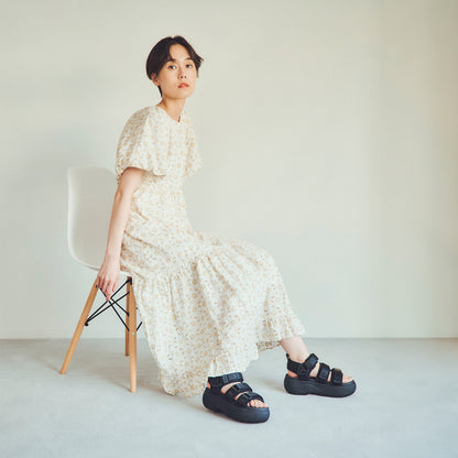 3本のストラップにはベルクロが採用されており、自分の足にぴったりとフィットするように調整可能です。しっかりホールドされるので、足のズレを防ぎ、安定した履き心地を提供します。また、脱ぎ履きも簡単で、日常使いにも便利です。