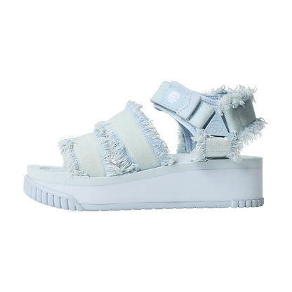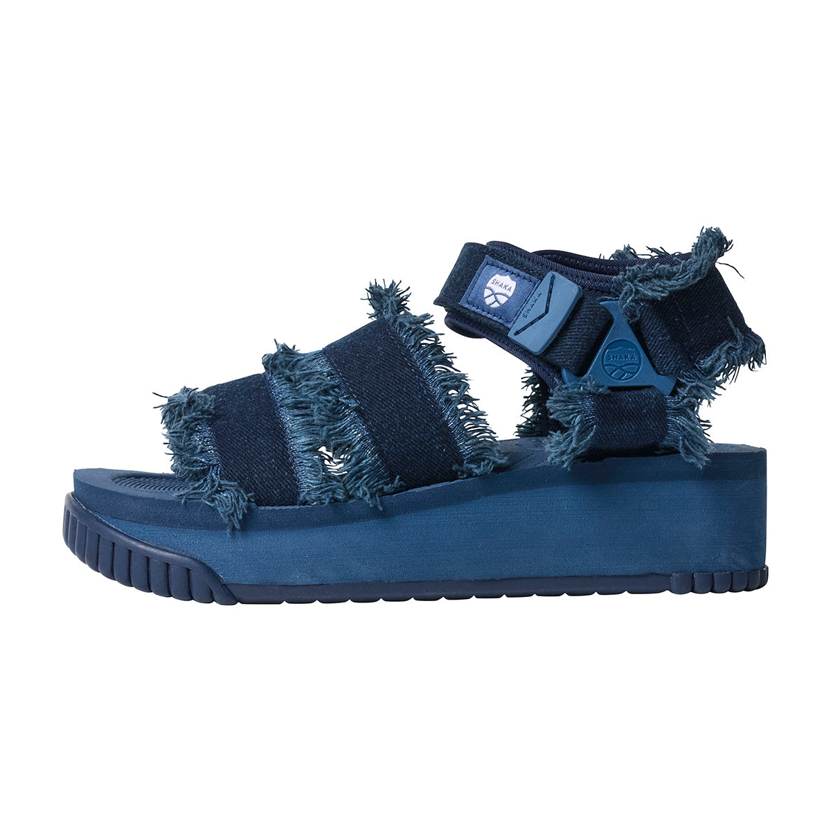 2025年春夏の新作厚底スポーツサンダル「NEO BUNGY PLATFORM DENIM」は、SHAKA(シャカ)のアイコニックな「NEO BUNGY PLATFORM」をベースに、素材を大胆にクラッシュデニムへとチェンジ。デニムの端をフリンジ加工することで、再燃するボヘミアンテイストを意識したファッション性の高いデザインに仕上げました。カジュアルでありながらトレンド感を押さえた見た目は、日常のスタイルにアクセント添えてくれます。