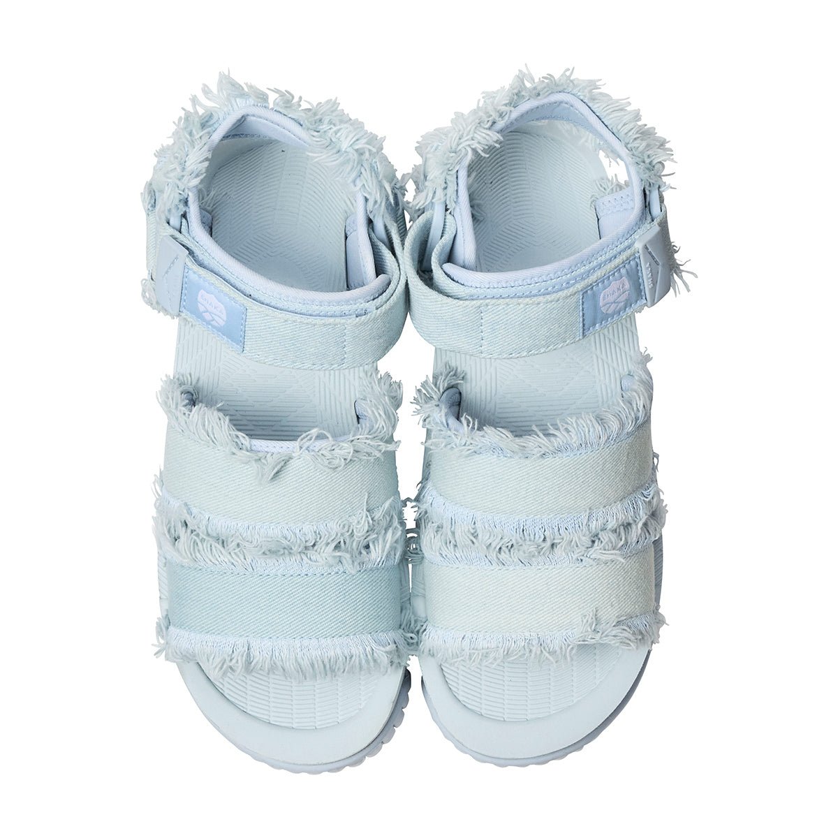 定番厚底スポーツサンダルをクラッシュデニムでトレンド感溢れる1足にアップデート。