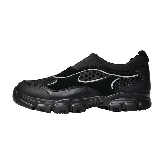 アッパーには、軽量かつ引き裂き強度に優れたリップストップナイロンと、通気性を確保するメッシュ素材を組み合わせて使用。蒸れにくく、長時間の着用でも快適な履き心地を維持します。タフな素材感がありながらも、全体のシルエットはシャープで洗練されており、アウトドア感が強くなりすぎない点も魅力です。面ファスナー(ベルクロ)で調整可能になっており、フィット感を簡単に調整でき、快適な安定感を実現しました